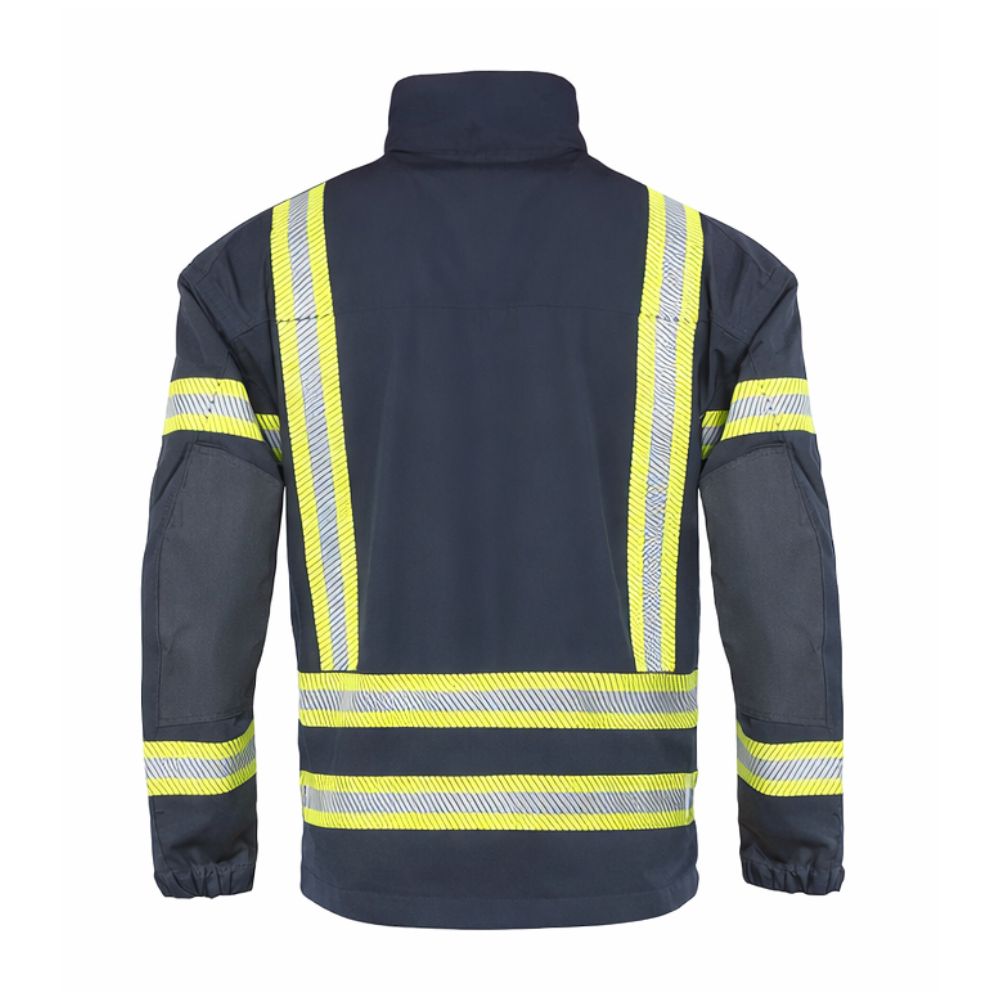 Οι ενισχύσεις σε αγκώνες και ώμους αυξάνουν την αντοχή στα σημεία έντονης καταπόνησης, εξασφαλίζοντας μεγαλύτερη διάρκεια ζωής. Οι πολλαπλές ανακλαστικές ταινίες σε μέση, μανίκια, στήθος και πλάτη ενισχύουν την ορατότητα σε χαμηλό φωτισμό, ενώ η αντιστατική προστασία και οι ευρωπαϊκές πιστοποιήσεις διασφαλίζουν συμμόρφωση και επιχειρησιακή ετοιμότητα σε απαιτητικές συνθήκες.