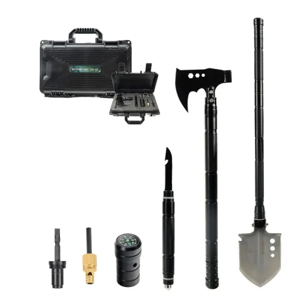 Το πτυσσόμενο πολυεργαλείο με φτυάρι και τσεκούρι Donges αποτελεί την ιδανική λύση για outdoor δραστηριότητες, camping και αποστολές επιβίωσης, προσφέροντας ευελιξία και αξιοπιστία σε κάθε περίσταση. Χάρη στον αρθρωτό σχεδιασμό του, αποσυναρμολογείται εύκολα και δέχεται διαφορετικά εξαρτήματα, μετατρέποντας το φτυάρι σε τσεκούρι, μαχαίρι ή πρακτική πυξίδα για ασφαλή προσανατολισμό στη φύση.